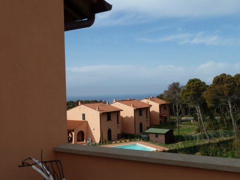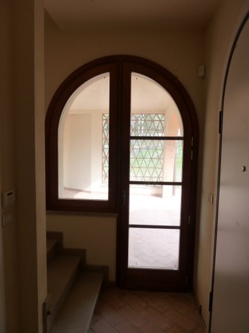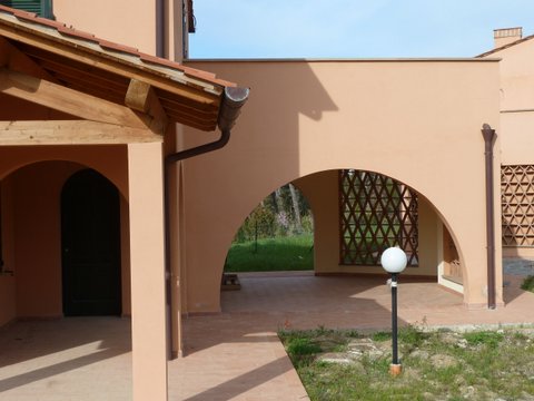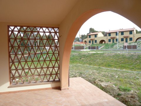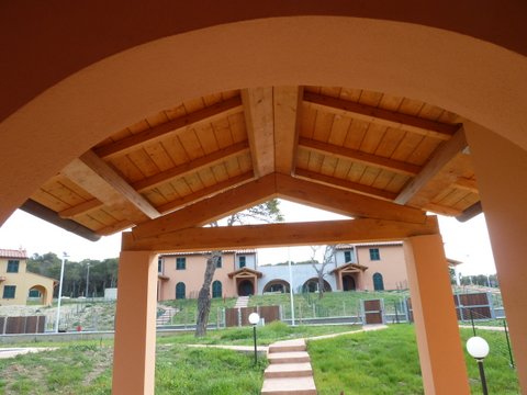 В виллах: терракотовые полы, деревянные оконные рамы со ставнями в тосканском стиле, лестницы и подоконники из местного камня, балочные потолки на верандах.